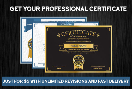 I can provide a Elegant High Quality Design for your Certificate, Gift Certificates, Anniversary,your school, college, company, engeo, business, sports,Diploma or any Awards Certificate,
